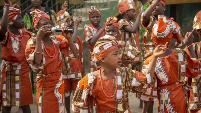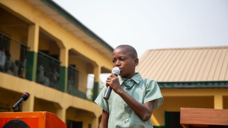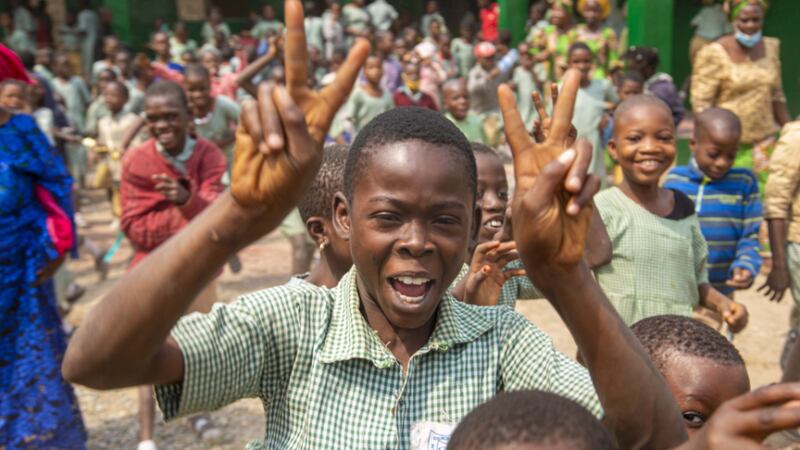 Neste mês, crianças comemoraram a inauguração de quatro novas salas de aula em sua escola em Abeokuta, Nigéria, com danças e discursos em um evento oficial de entrega.