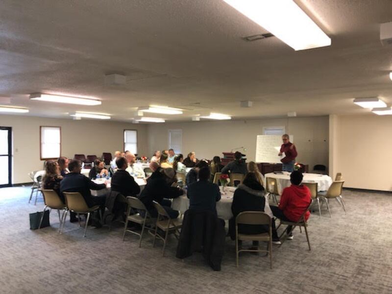 Eles determinaram que poderiam continuar alugando salas no Osage Center aos domingos temporariamente. Mas foi uma solução apertada: “Imaginem 30, 40, 50 crianças da Primária na mesma sala e a única coisa que as separava eram as divisórias de tecido com apenas alguns metros de altura”, disse o bispo Fulton.
